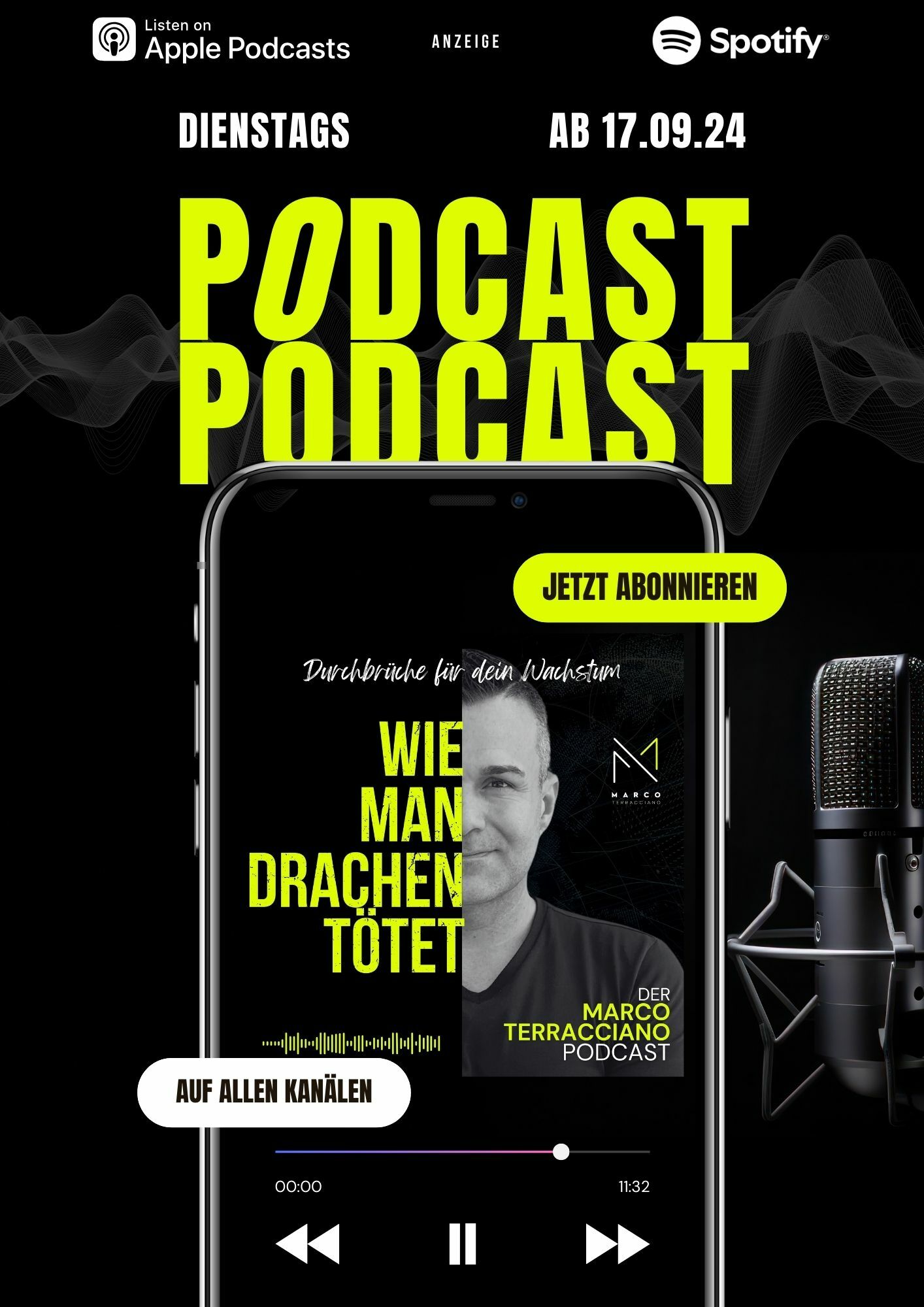 In seinem Podcast „Wie man Drachen tötet“ spricht Marco Terracciano offen und ehrlich über die Herausforderungen, mit denen Unternehmer, Führungskräfte und Selbstständige täglich konfrontiert sind. Mit über 22 Jahren Erfahrung im Unternehmertum bietet Marco wertvolle Einblicke und Impulse, wie man aus Fehlern lernt, Krisen übersteht und trotz Rückschlägen erfolgreich bleibt. Jede Episode liefert praxisnahe Tipps und inspirierende Geschichten, die Sie nicht nur motivieren, sondern auch strategische Werkzeuge für den Alltag an die Hand geben. Ob es um Wachstum, Mut oder Durchbrüche geht – dieser Podcast ist der perfekte Begleiter für alle, die bereit sind, sich ihren eigenen Herausforderungen zu stellen und ihr Potenzial voll auszuschöpfen. Abonnieren Sie „Wie man Drachen tötet“ und erhalten Sie regelmäßig neue Impulse, um Ihre eigenen Drachen zu besiegen und echte Erfolge zu feiern!